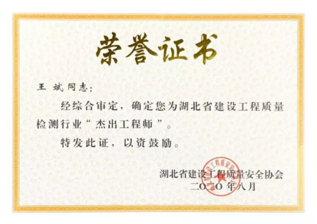 湖北省建設(shè)工程質(zhì)量檢測行業(yè)杰出工程師
