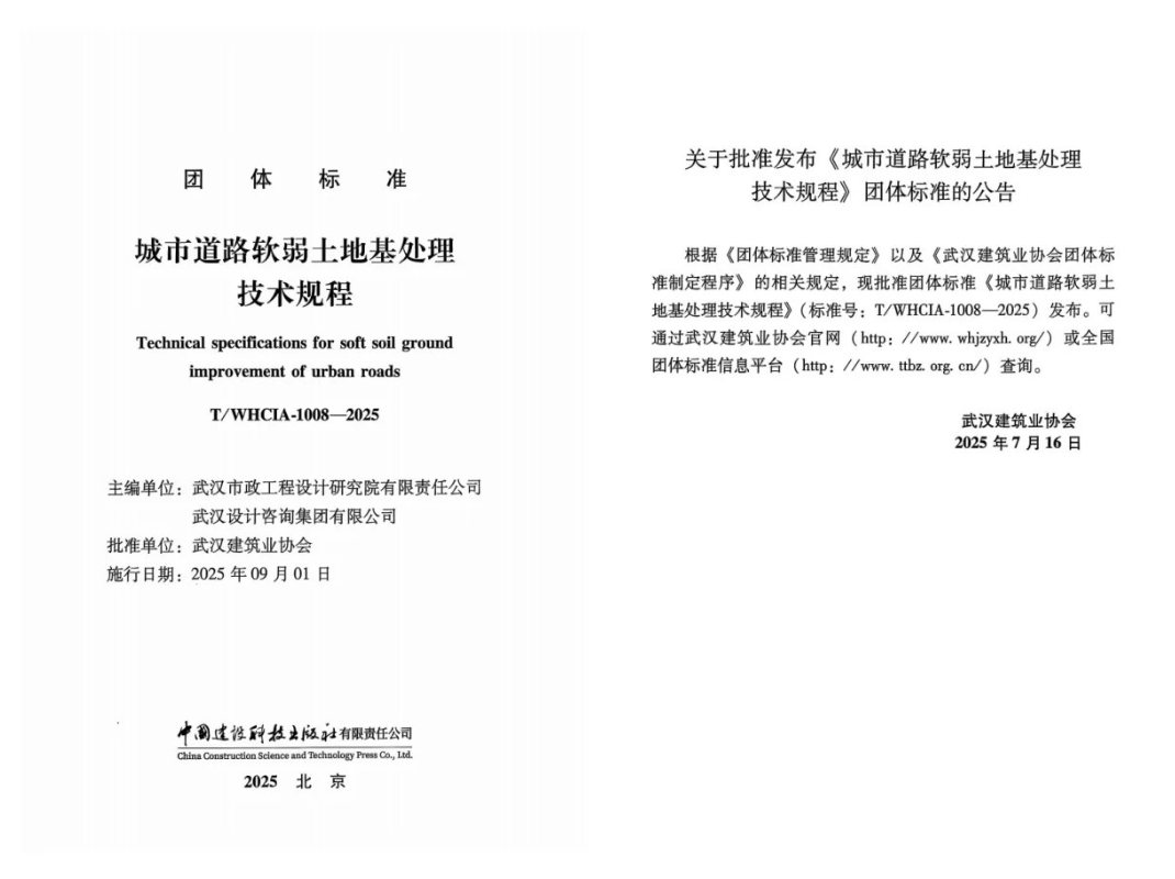 武漢市政院與武漢設計咨詢集團聯(lián)合主編的團體標準《城市道路軟弱土地基處理技術規(guī)程》,已由武漢建筑業(yè)協(xié)會批準發(fā)布。該規(guī)程是國內首部專門針對城市道路軟弱土地基處理的技術標準,有效解決了現(xiàn)行建筑與公路規(guī)范在市政道路工程中存在的諸多不明確、不統(tǒng)一的應用問題。其內容系統(tǒng)全面,兼具實用性與先進性,既體現(xiàn)了市政行業(yè)特色,又契合城市道路實際建設需求,對湖北省內城市道路軟弱土地基處理的設計、施工、關鍵技術方法及檢測監(jiān)測等方面提供了權威依據與科學指導。該《規(guī)程》整體達到國內先進水平,在行業(yè)與省內居于領先地位。它的發(fā)布進一步鞏固了武漢市政院在市政巖土工程領域的技術優(yōu)勢,顯著提升了公司的行業(yè)影響力與核心競爭力。