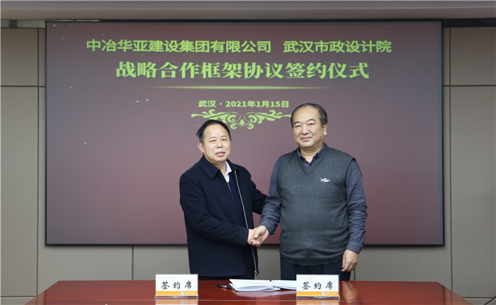 2021年1月15日上午,公司與中冶華亞建設(shè)集團(tuán)有限公司在漢簽署戰(zhàn)略合作協(xié)議,雙方將充分發(fā)揮各自資源、資質(zhì)、品牌、人才、技術(shù)優(yōu)勢,在市政工程、勘察設(shè)計等領(lǐng)域深化戰(zhàn)略合作,建立新時代全面戰(zhàn)略合作伙伴關(guān)系,攜手共謀高質(zhì)量發(fā)展。