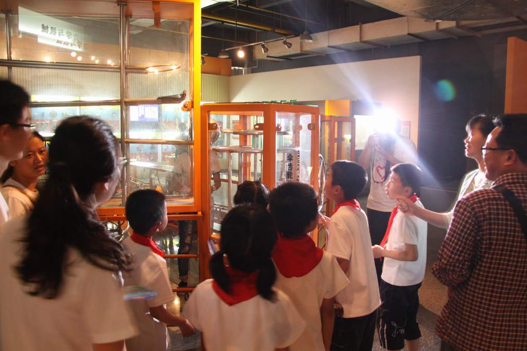 ??? 上午11時(shí)許,二十名學(xué)生在老師的帶領(lǐng)下乘車來到了本次活動(dòng)的地點(diǎn)——武漢市科技館,早在那里等候的副總經(jīng)理趙世杰和二十余名志愿者熱情歡迎了遠(yuǎn)道而來的小客人,并結(jié)成了“手拉手”小伙伴。在講解員的帶領(lǐng)下,志愿者與孩子們一起參觀了科技館內(nèi)的各種科技儀器,新奇的科技世界讓學(xué)生們驚嘆不已,他們駐足在各種科學(xué)儀器面前,體驗(yàn)著奇妙的科技感受。