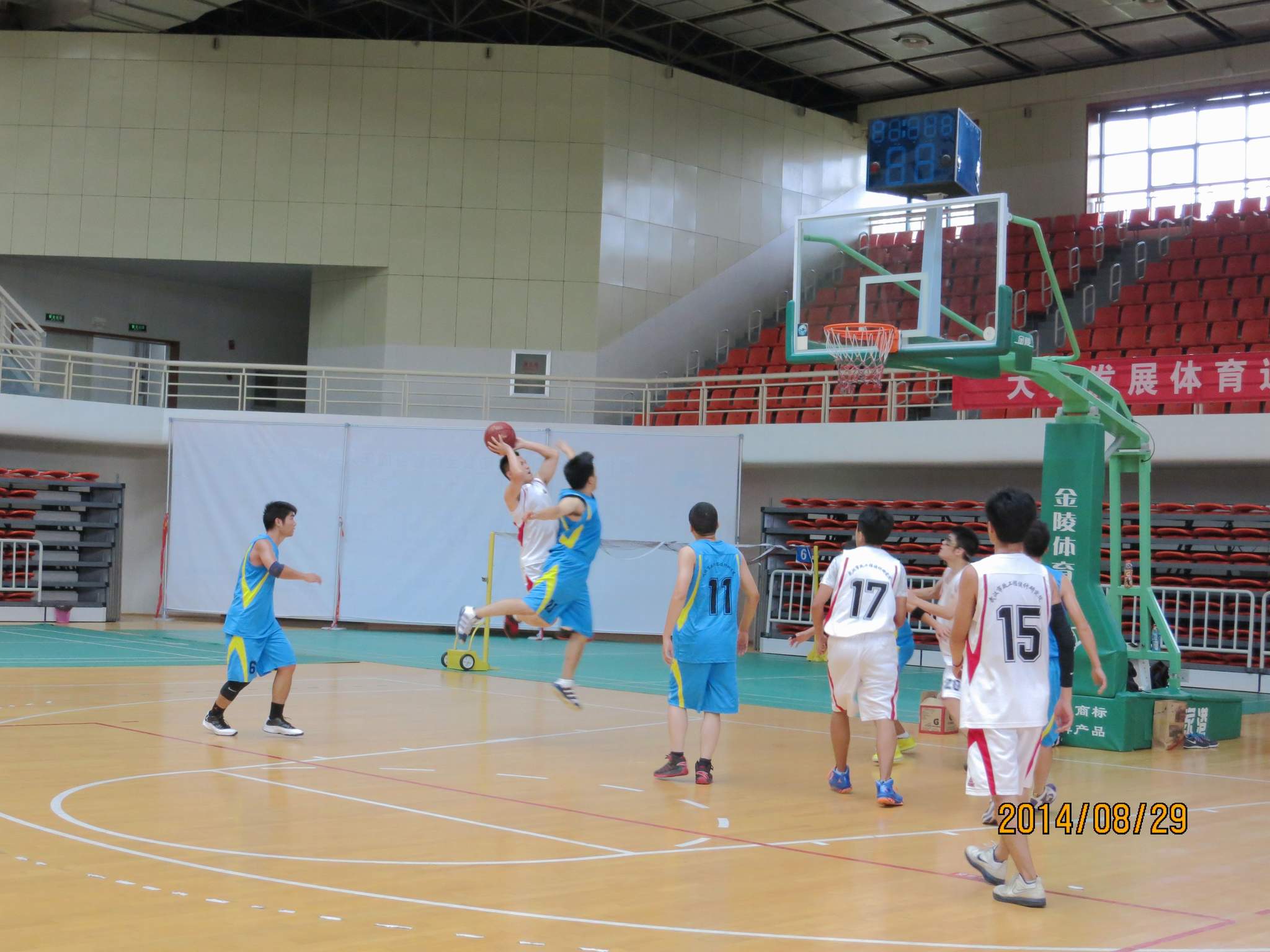 ??? 來自公司的八個分工會經(jīng)過抽簽,組成了兩支隊伍參加比賽,由于雙方實力相當,這場比賽在賽前就被認為是一場勢均力敵的比賽。但是,比賽開始后,一個人的出現(xiàn)就迅速打破了場上的均衡,他就是來自藍隊的王龍。他的突破和快攻頻頻得手,很快便為藍隊確立了領(lǐng)先優(yōu)勢。相比于藍隊的個人表演,白隊依靠的則是團隊配合,在克服了開賽之初球隊磨合不夠的困難后,白隊漸漸找到比賽的感覺,打出了多次漂亮的團隊配合,緊緊咬住比分。然而,第三節(jié)將近五分鐘的時間未能得分,還是讓他們?nèi)鄙仝s超比分后勁。隨著裁判的一聲哨響,比賽宣告結(jié)束,最終的比分定格在69:55,藍隊以14分的優(yōu)勢獲得了勝利,王龍更是一人獨得35分,榮膺了本場比賽的得分王。