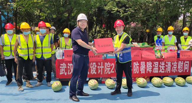 公司領(lǐng)導(dǎo)先后來到長江新城諶家磯再生水廠工程、湯遜湖污水處理廠尾水排江工程總承包項目、環(huán)湖中路排水工程測量、龍王嘴污水處理廠、青山海綿城市等項目現(xiàn)場,詳細了解項目進展情況、高溫防暑措施和疫情防控情況,并為堅守崗位的員工們送上高溫慰問品,感謝他們在城市建設(shè)中做出的積極貢獻,叮囑他們做好防暑降溫和個人防護,注意勞逸結(jié)合,在保證項目按期推進的同時務(wù)必保證個人的安全與健康。