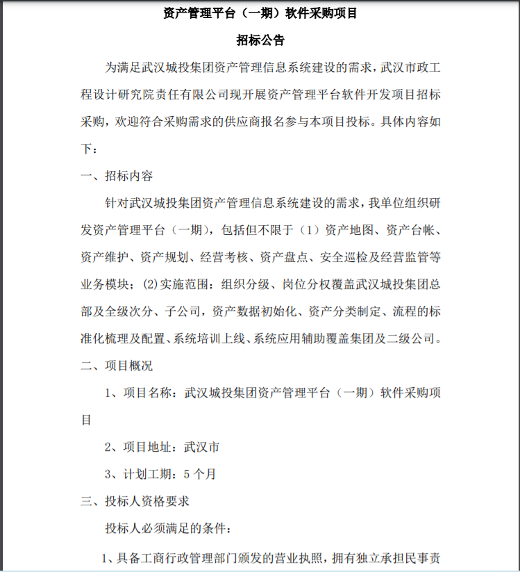 資產(chǎn)管理平臺(tái)(一期)軟件采購(gòu)項(xiàng)目 招標(biāo)公告