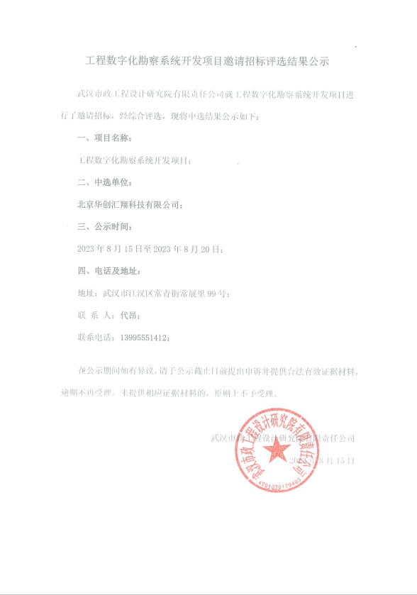 工程數字化勘察系統(tǒng)開發(fā)項目邀請招標評選結果公示